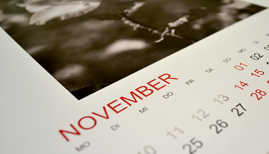Wählen Sie Ihren Wunsch-Monat, und Ihr Kalender fängt z.B. am 01.05. an und endet mit dem 30.04. des Folgejahres.