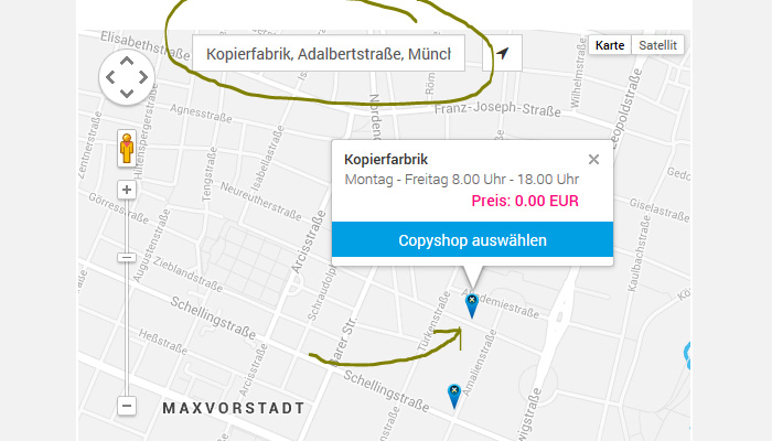 Geben Sie uns "Kopierfabrik Schwabing" als Copy-Shop an. Wir drucken wie gewohnt für Sie. Holen Sie Ihren Druck einfach bei uns im Geschäft ab.